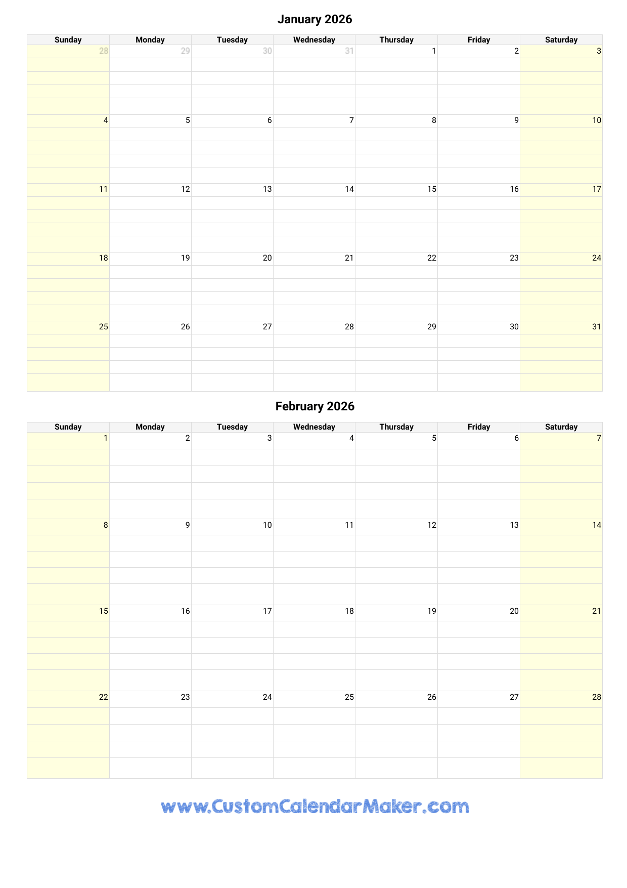 January And February 2026 Calendar Custom Calendar Maker