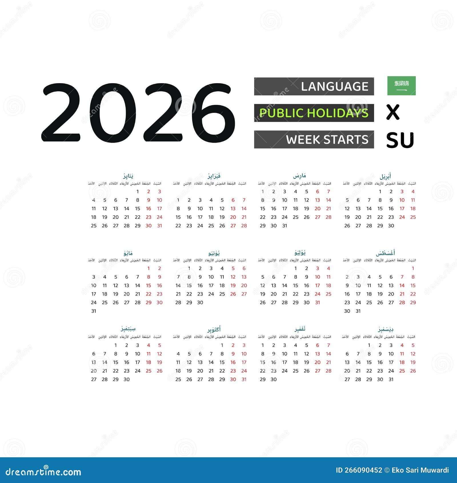 Calendar 2026 Arabic Language With Saudi Arabia Public Holidays
