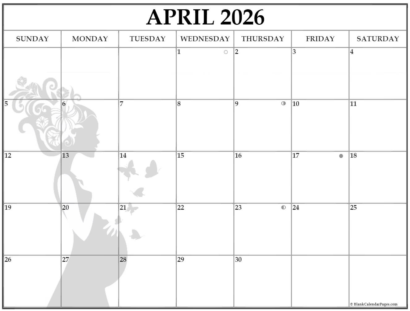 April 2026 Calendar With Moon Phases