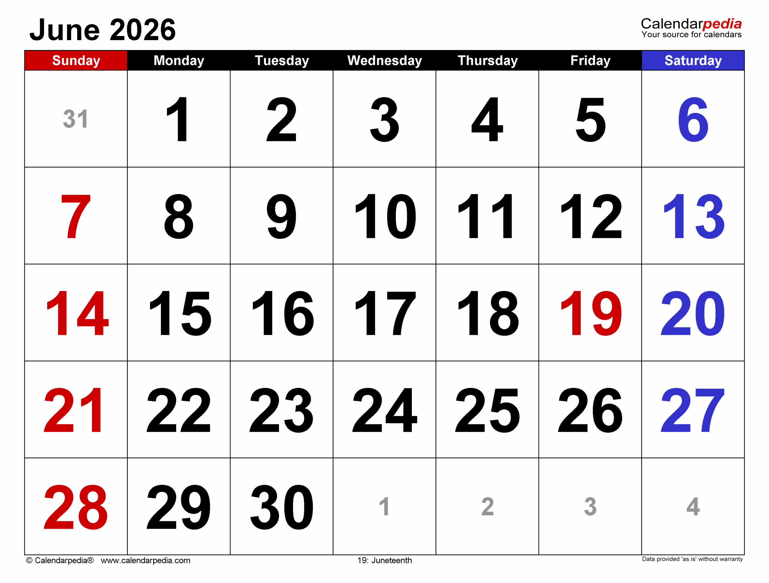 June 2026 Calendar Templates For PDF Excel And Word