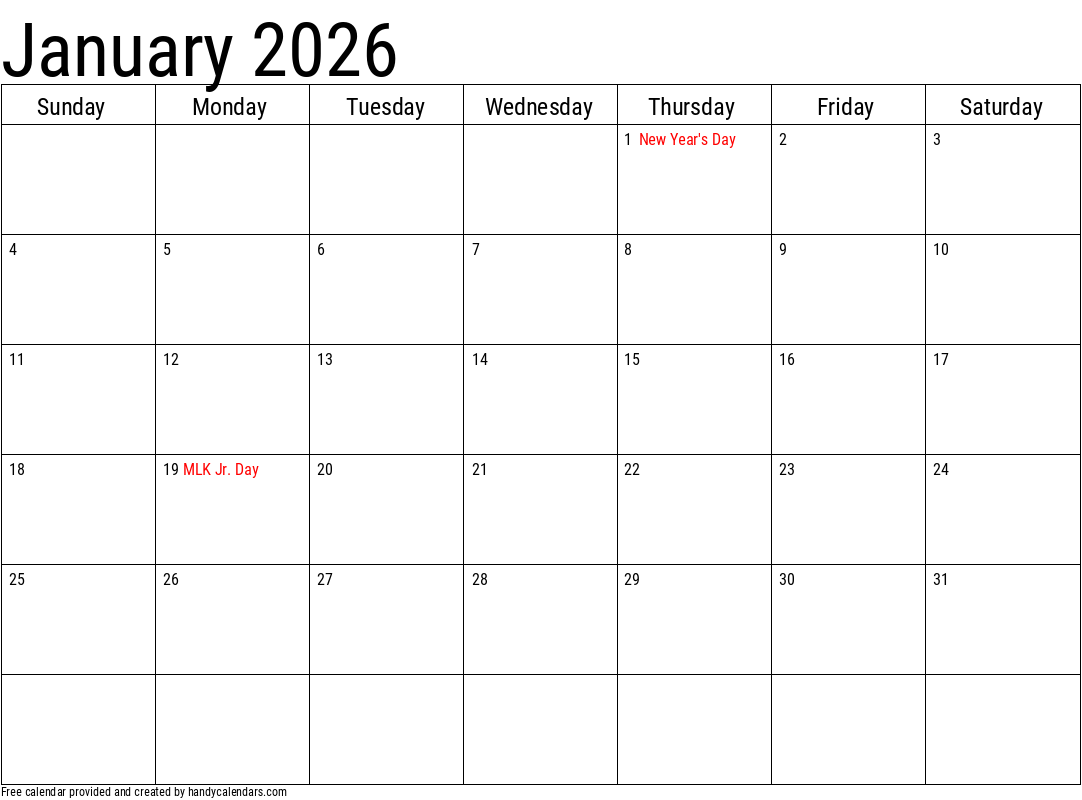 2026 January Calendars Handy Calendars