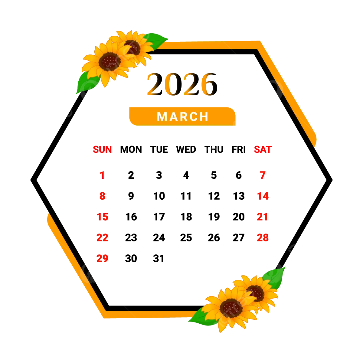 2026 March Calendar With Unique Flower Frame Vector Monthly Calendar Calendar March 2026 PNG And Vector With Transparent Background For Free Download