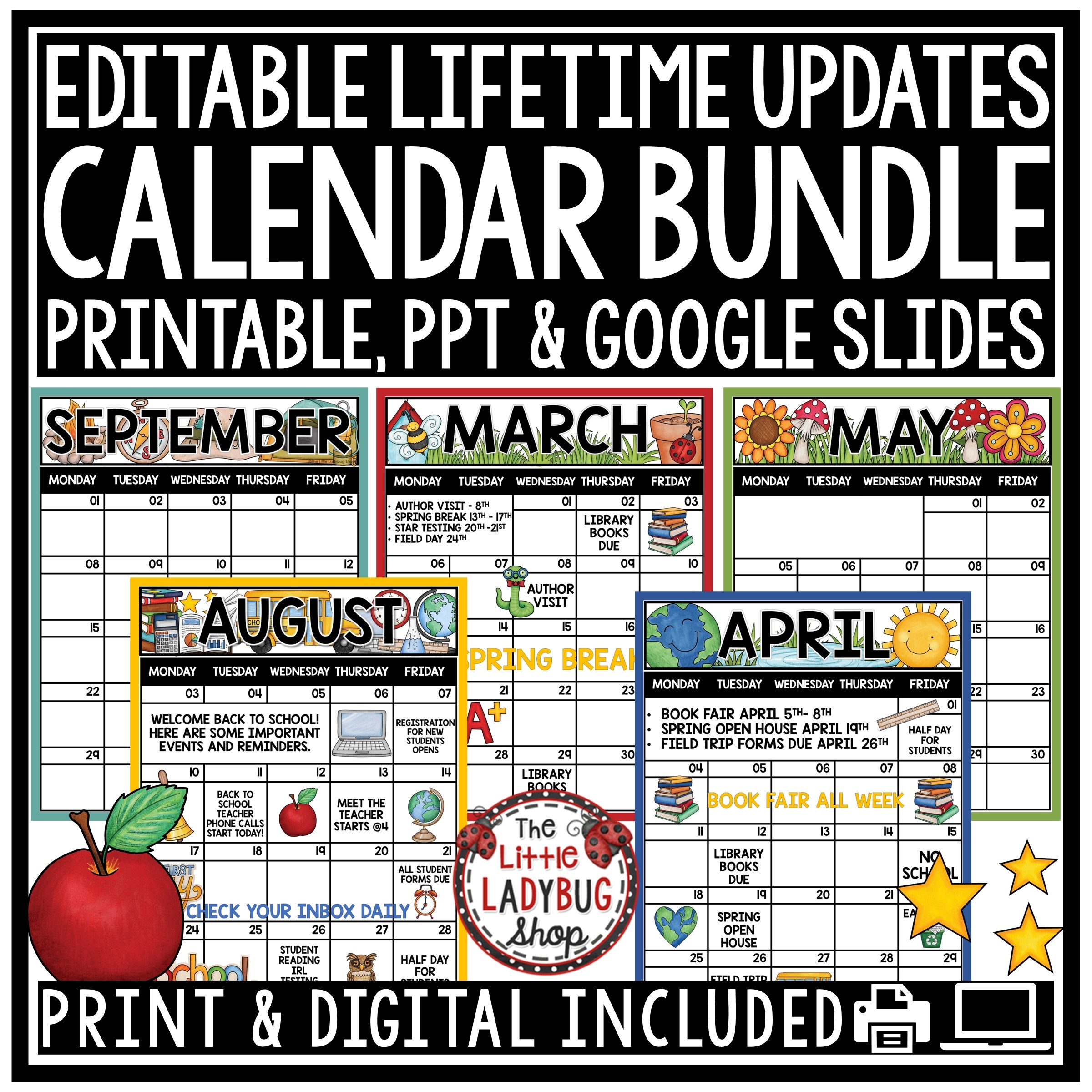 Editable Monthly Calendar Templates Class Communication The Little Ladybug Shop