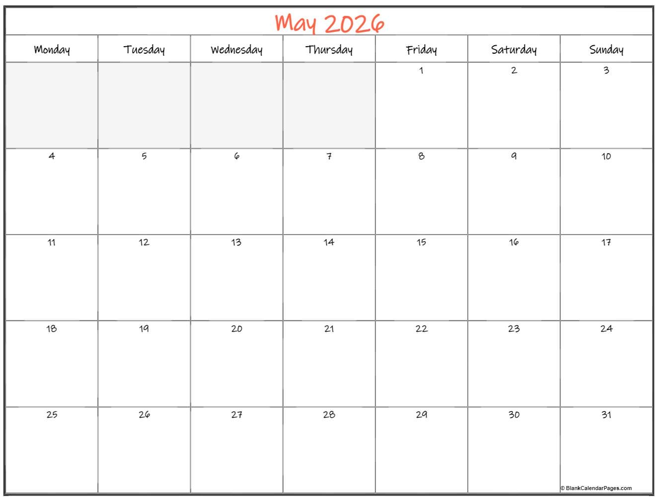 May 2026 Monday Calendar Monday To Sunday