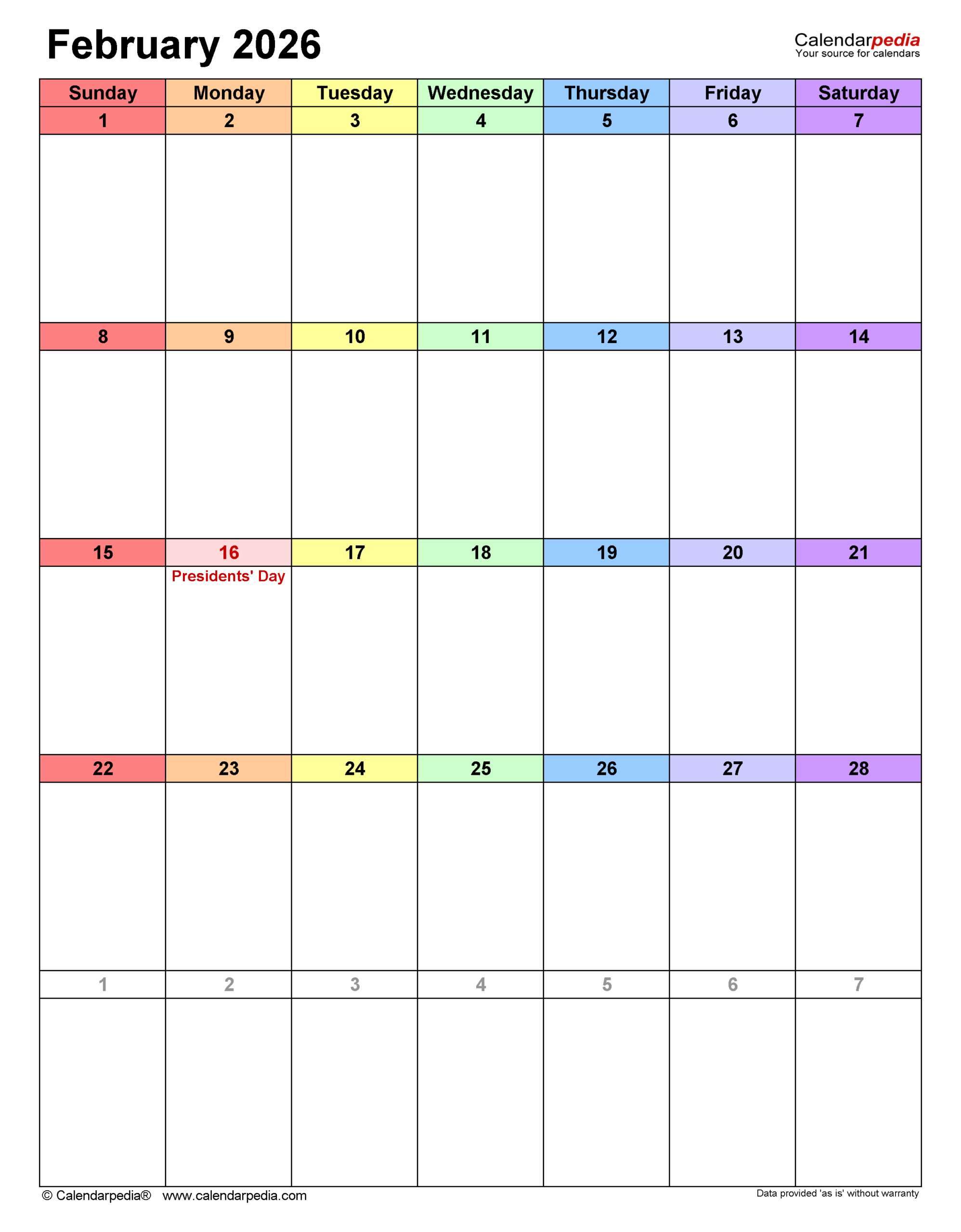 February 2026 Calendar Templates For PDF Excel And Word