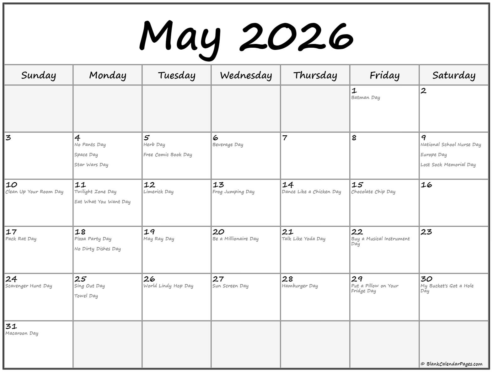 So why settle for a boring calendar when you can have one that brings a smile to your face every time you look at it? Get your hands on the Fun May 2026 Calendar today and make your month a little brighter!