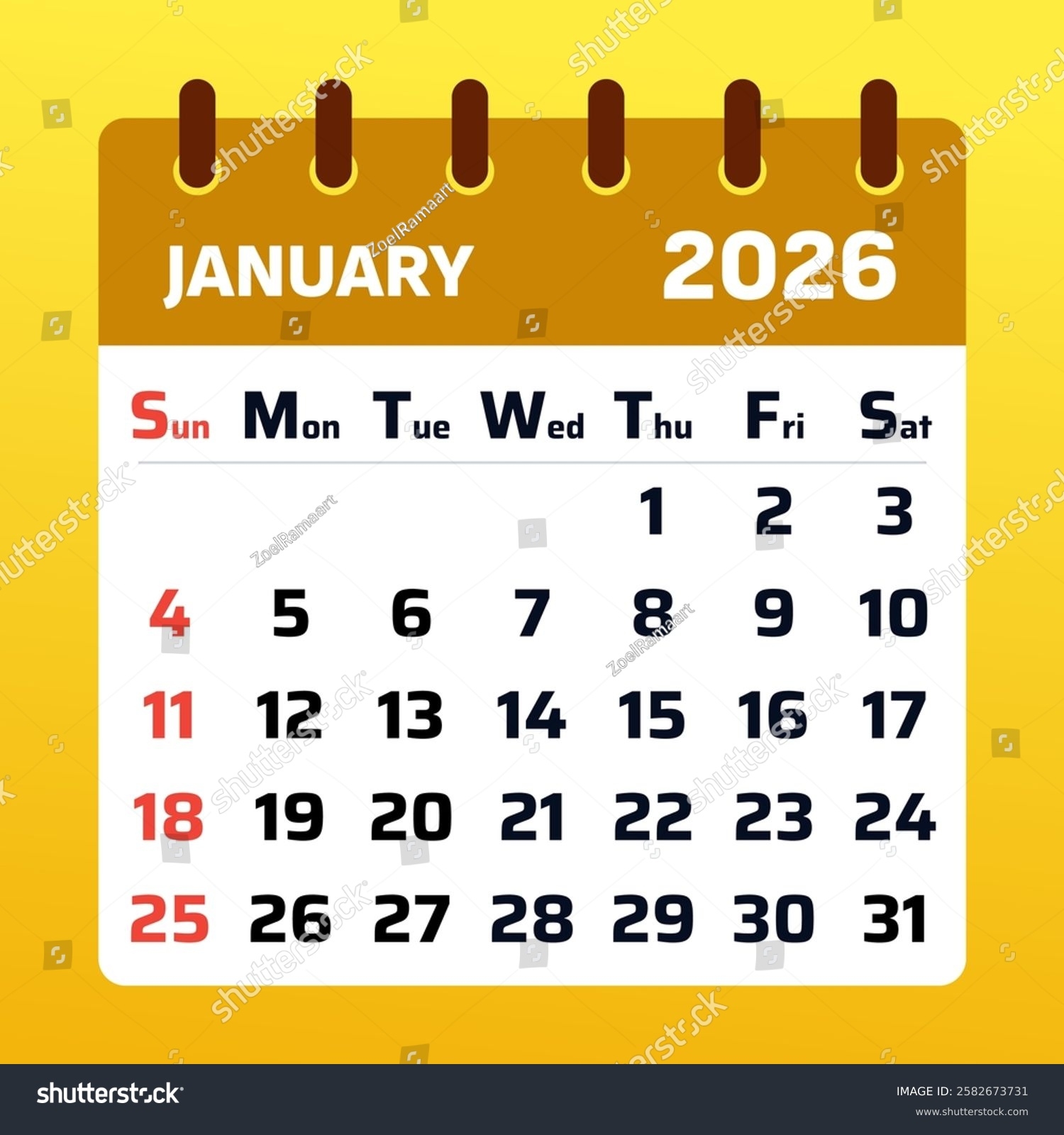 2026 January Monthly Calendar Vector 2026 January Monthly