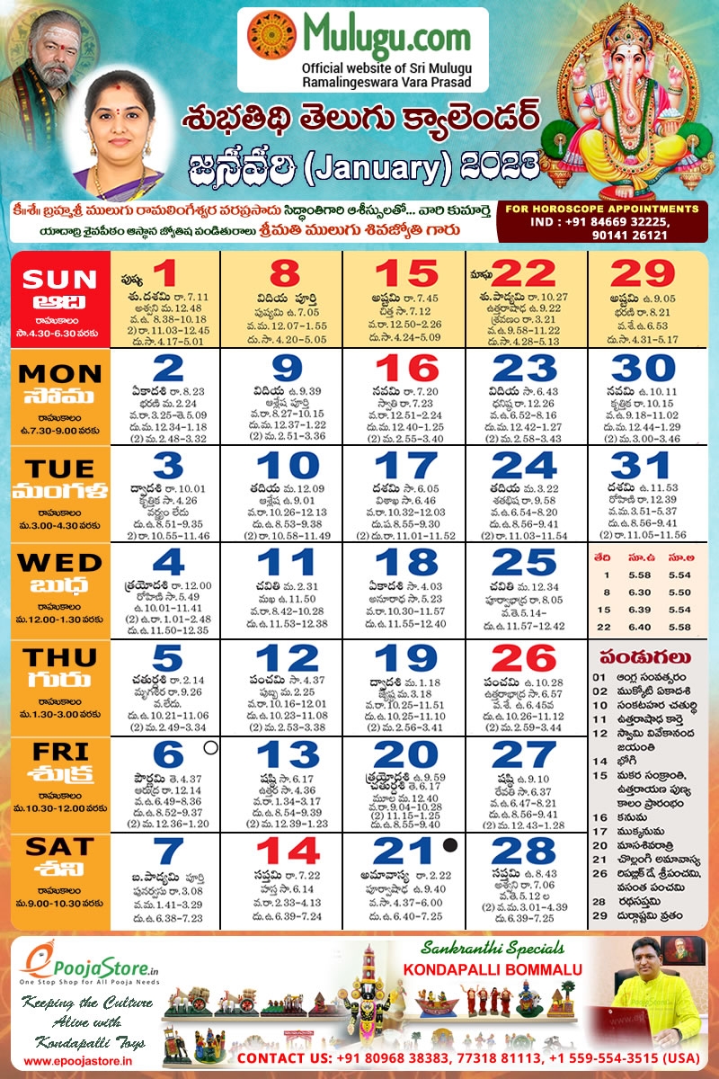 Subhathidi January Telugu Calendar 2023 Telugu Calendar 2023