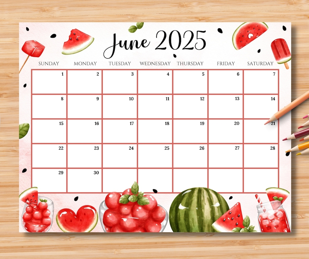 EDITABLE June 2025 Calendar Happy Summer W sweet U0026 Colorful