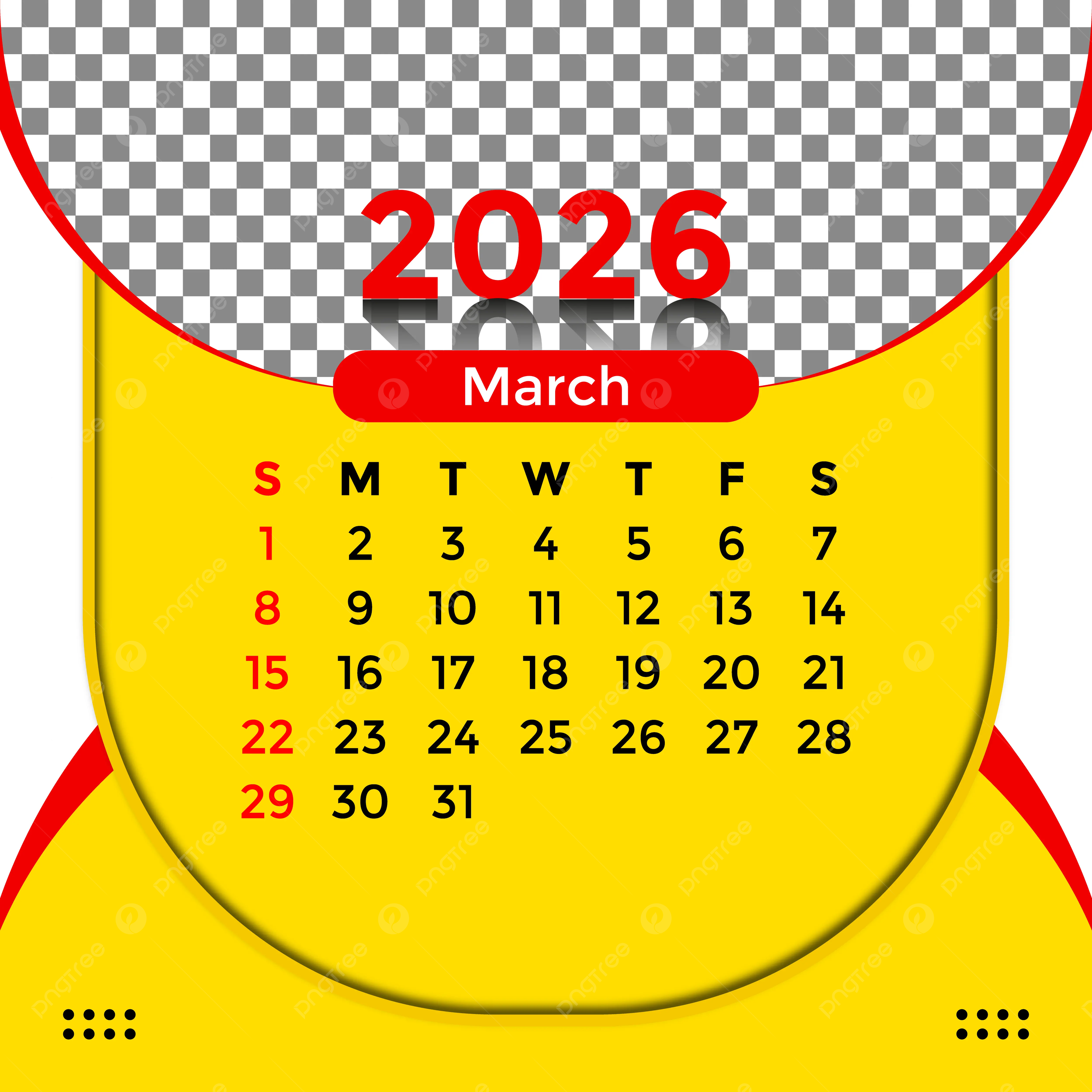 March 2026 Calendar Yellow And Red Vector Template Download On Pngtree