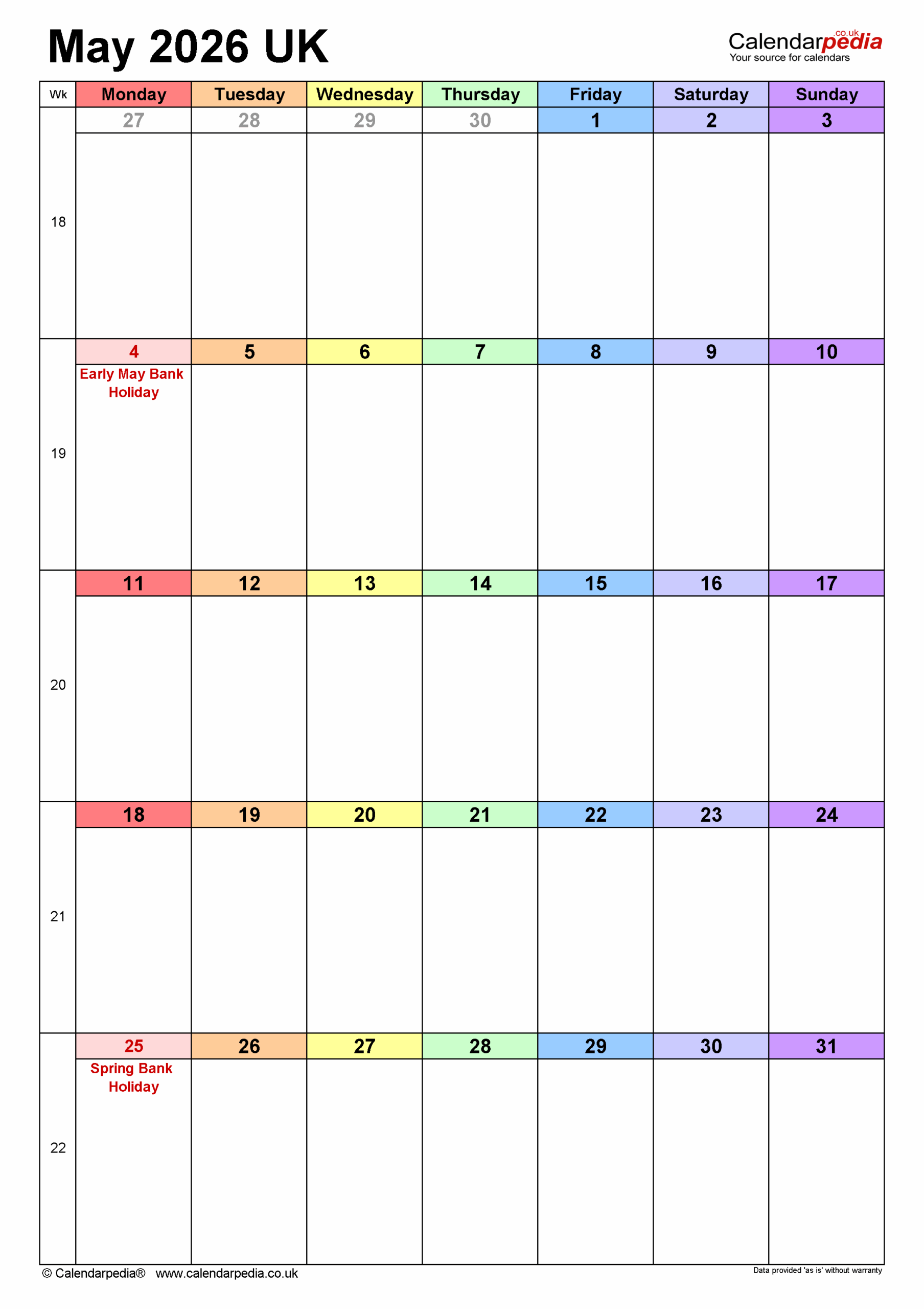 Calendar May 2026 UK With PDF Excel And Word Templates