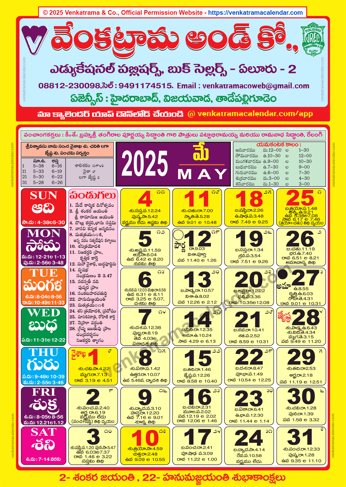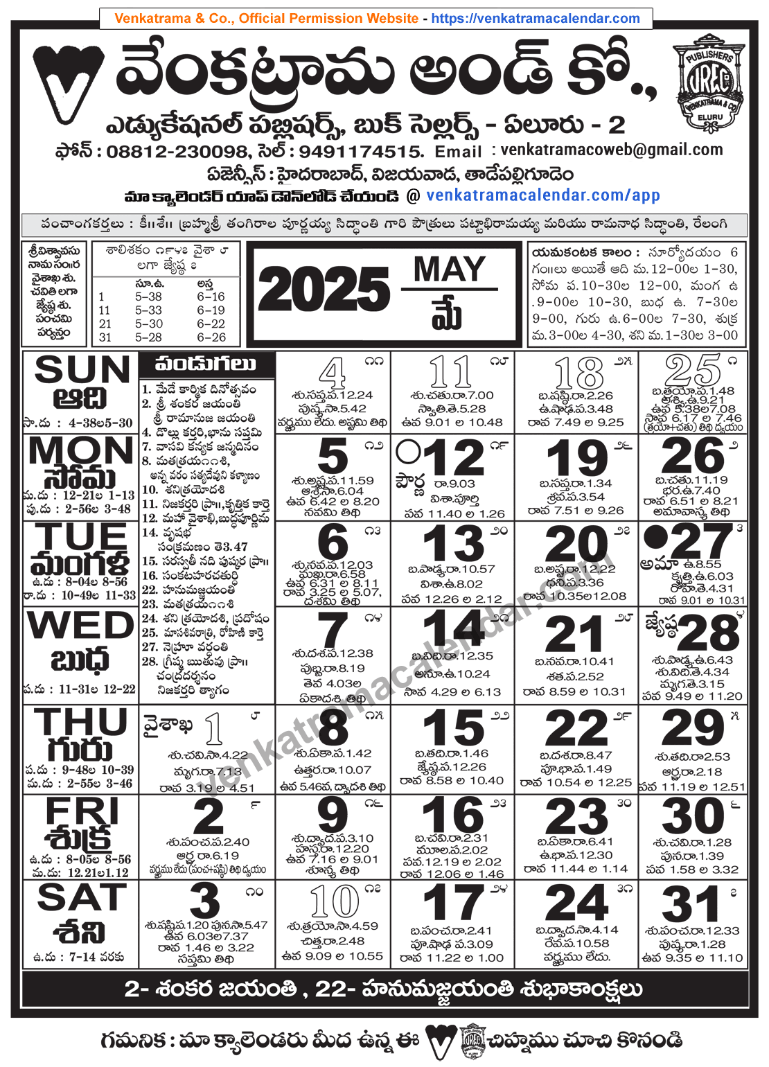Venkatrama Calendar 2025 May Venkatrama Telugu Calendar 2025 Festivals Rasi Phalalu 2025 2026 Muhurtham