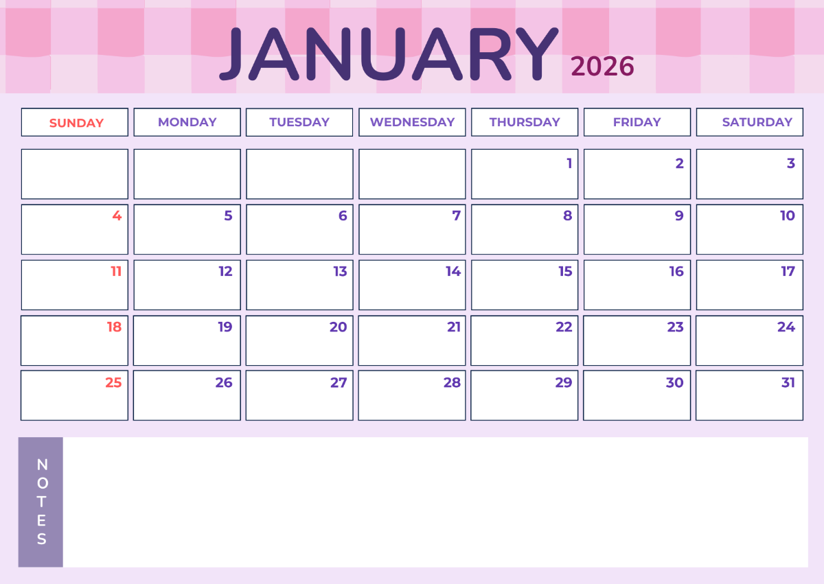 Pink January 2026 Calendar: Stay Stylishly Organized