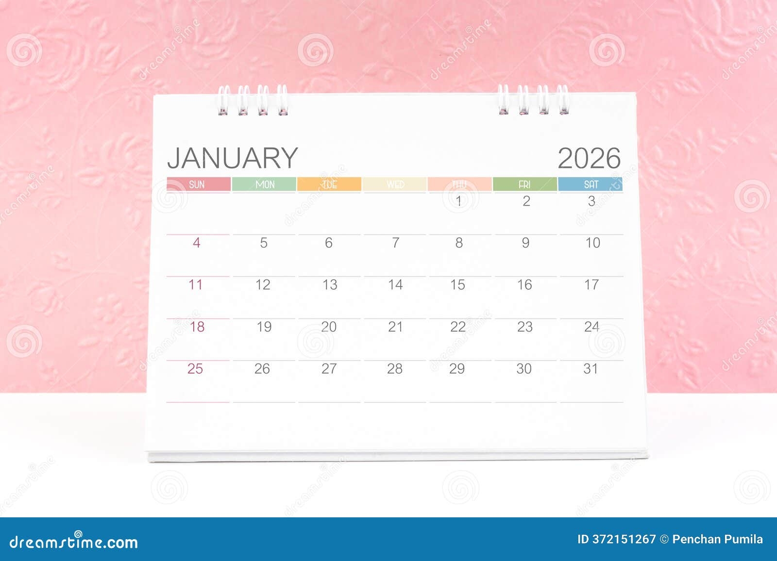January 2026 Desk Calendar With Pink Color Flower Pattern Embossed Stock Image Image Of Office Week 372151267