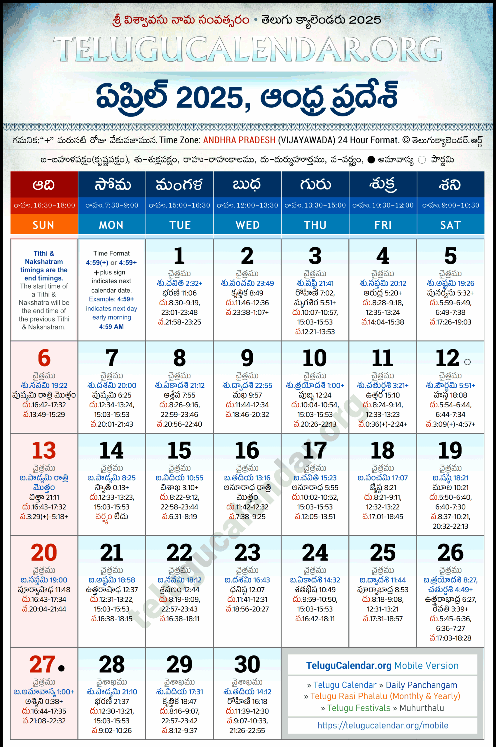 Telugu Calendar 2025 April