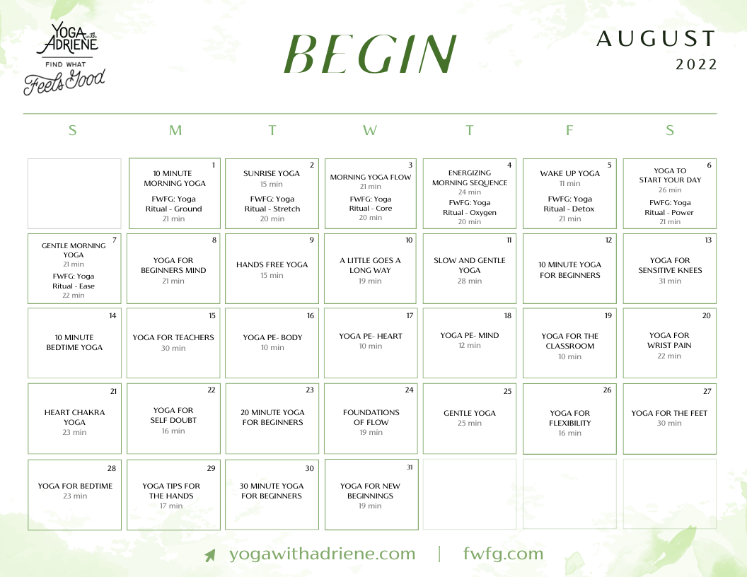 Calendar Yoga With Adriene